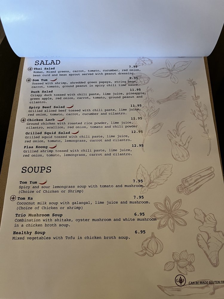 Seafood lovers will relish the Green Curry Salmon, set on a bed of colorful vegetables, while the Tamarind Jumbo Shrimp dazzles with its tangy profile. Customers rave about the overall taste and the beautifully presented dishes, making each visit a memorable culinary experience. Whether you're dining in or taking out, 8Thai promises a flavorful adventure you won’t soon forget.